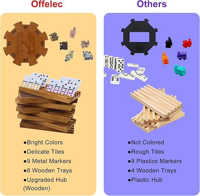 - 【All In One Set】: Offelec mexican train double 12 dominoes set is a complete set that includes everything you need to play this timeless and classic game. With all the necessary tiles, markers, and accessories included, you can start playing right out of the box