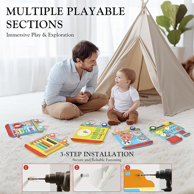 - EASY TO INSTALLL: Assemble this busy board in just 10 minutes. Its durable design makes it perfect for kindergartens, daycares, playrooms, and waiting rooms, providing long-lasting use in various child-friendly settings