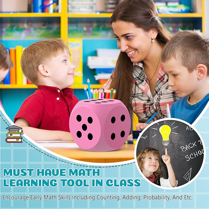 - a Blend of Fun and Education: the giant foam dices meet your needs by not only elevating the joy of game nights, but also enhancing mathematical teachings; Ideal in providing amusement, they are full of pedagogical values, making them ideal tools to teach probability and simple arithmetic; They can also serve as markers or counters, allowing educators to stimulate students' interest and foster critical thinking