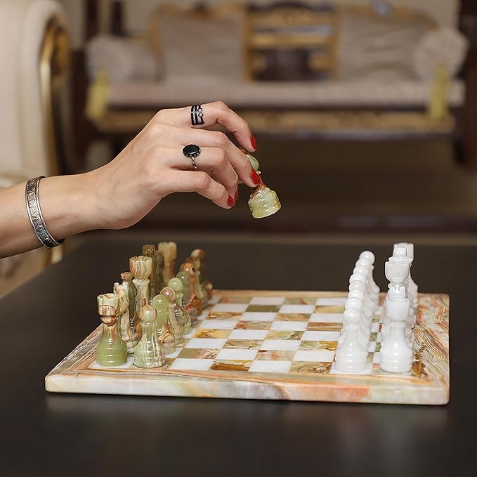 Handmade Marble Chess Set - Green Onyx & White (12 x 12 Inches) - Chess Sets for Adults - Premium Quality Chess Boards - Fancy Chess Boards
