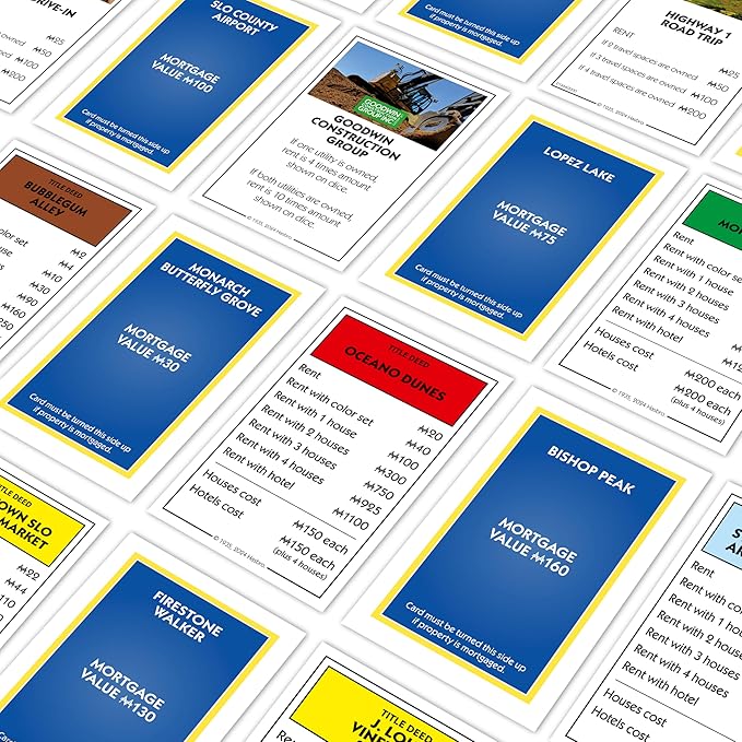 - Discover SLO CAL Through Monopoly: Immerse yourself in the scenic beauty and unique charm of San Luis Obispo County with this special edition. Explore vibrant towns, stunning landscapes, and local landmarks as you strategize and negotiate your way to success. Perfect for locals and visitors alike, this game captures the spirit and culture of SLO CAL, making it an ideal addition to any game night.