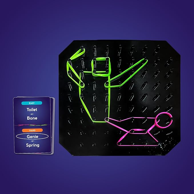 - Innovative Gameplay: Stretch ‘N’ Sketch is a creative board game where players use rubber bands to sketch prompts on a peg board. With 142 unique prompt cards, it’s a fresh twist on classic board games, challenging players in a fun and interactive way.