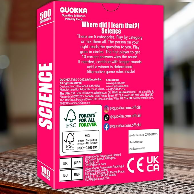 QUOKKA Trivia Card Game with 500 Questions in Science – Trivia Games for Adults, Teens, and Families – Trivia Cards with Answers – Great Board Games Trivia for Family Party and Game Night