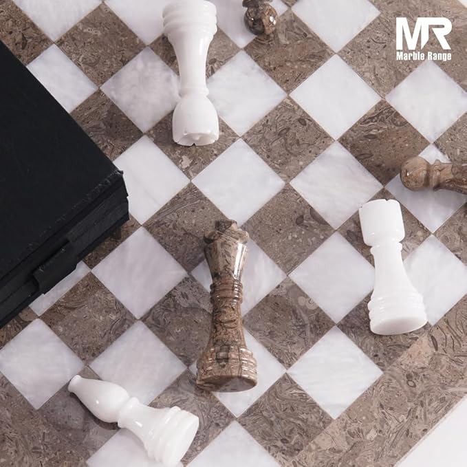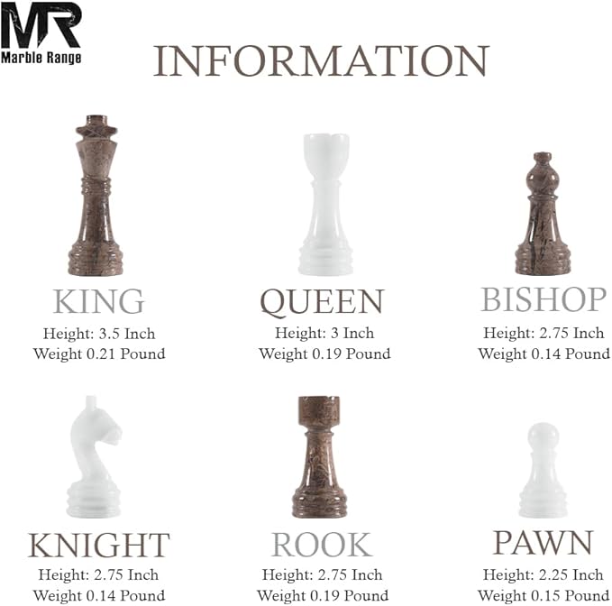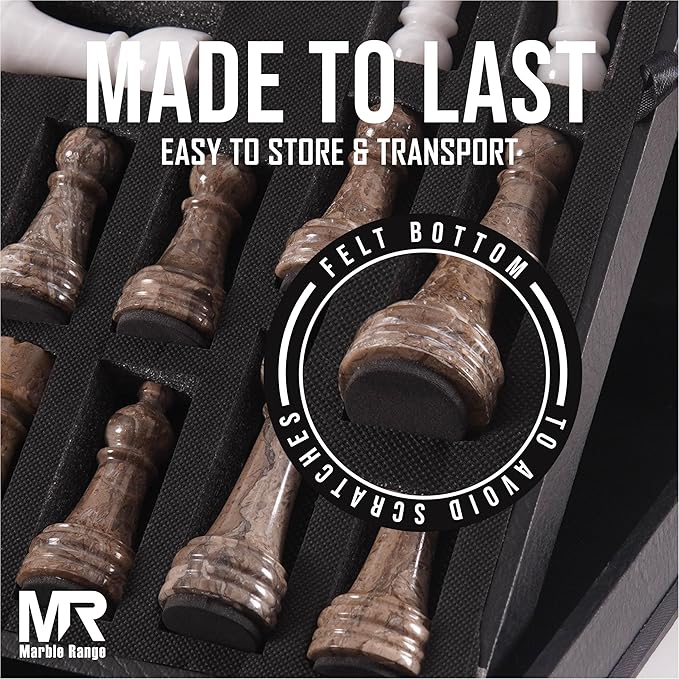 - Includes everything you need: 1 x marble chess board, 32 x chess pieces, plus 2 extra queens for advanced gameplay. You’ll receive 2 Kings, 2 Queens, 4 Knights, 4 Bishops, 4 Rooks, and 16 Pawns — all stored safely in a Marble Range branded storage box with secure fragile packaging.