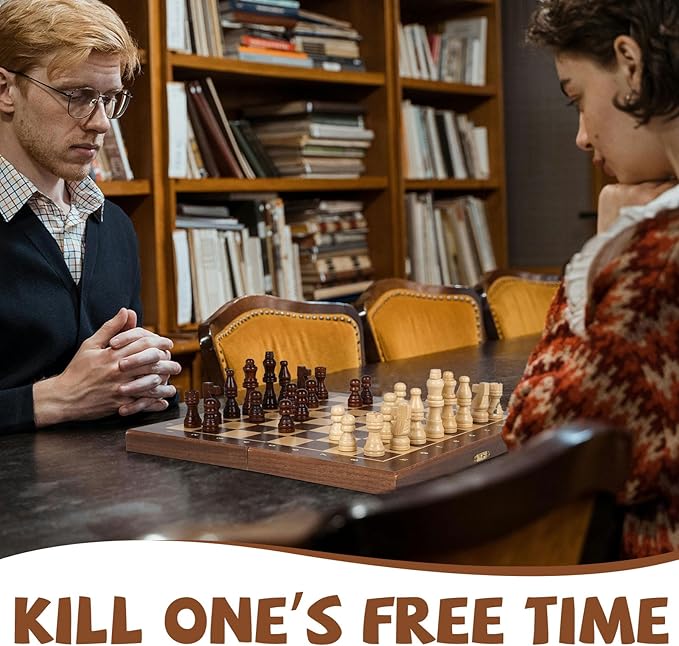- High-Quality Craftsmanship: The set is crafted with fine wood and magnetized pieces that offer a satisfying tactile experience. The smooth finish, detailed pieces, and classic design elevate your chess experience, making this set an excellent gift for both beginners and seasoned players alike.