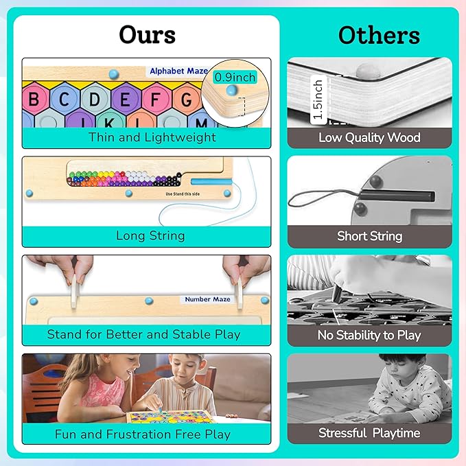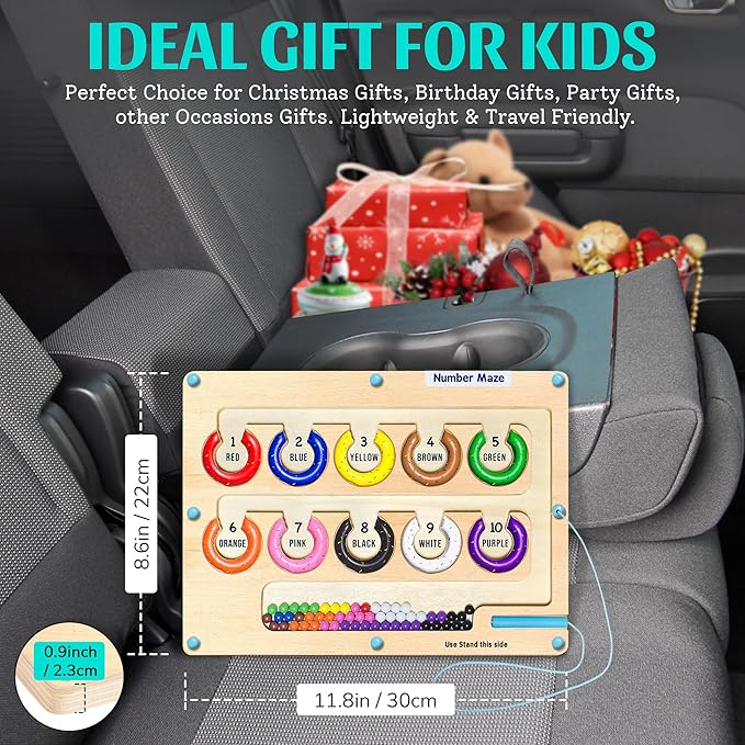 - Interactive 2-in-1 Montessori Toy:The Montessori magnetic maze board is 2 in 1 scientific design features dual-sided fun! One side of the board focuses on Numbers & Colors, while the other side emphasizes Alphabets & Words. A versatile Wooden magnetic board maze allows children to learn 4 skills number, alphabet, counting, and color matching, keeping them fun and focused for aged 3-5 toddlers.