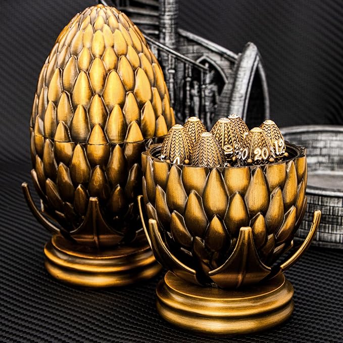 - 【Dragon Egg Dice Set】: Complete your gaming arsenal with this set including D4, D6, D8, D10, D12, D20, and D%, all fitting harmoniously within a unique dragon egg shell for easy storage.