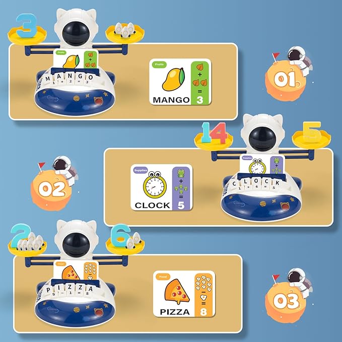 - Preschool Learning Toy:Veais space balance toys teach basic counting, math skills and letter words spelling. Combine three preschool education functions in one. Great gift for children ages 3 4 5 6 years girls and boys