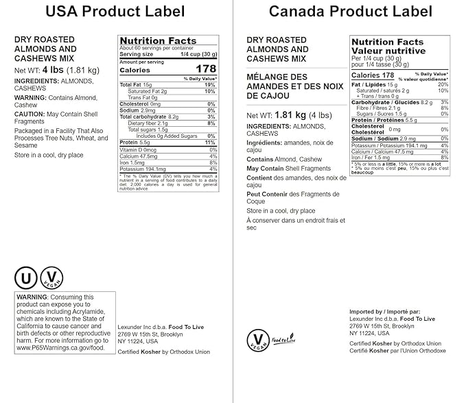 Food to Live - Dry Roasted Almonds and Cashews Mix, 4 Pounds – Unsalted Oven Roasted Nuts, Protein Rich Trail Mix, Healthy Vegan Snack, No Oil Added