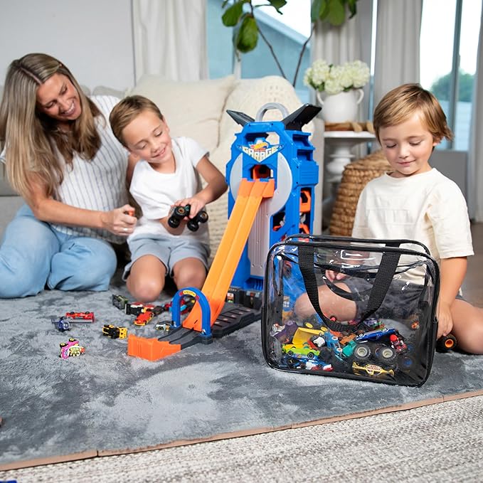 4 Pack Extra Large Toy Storage Clear Bags with Zipper 12"x10"x7" Clear Plastic Bins with Handle, Toy Organizer for Kids playroom, Blocks, Clothes, Stuffed Animal Storage
