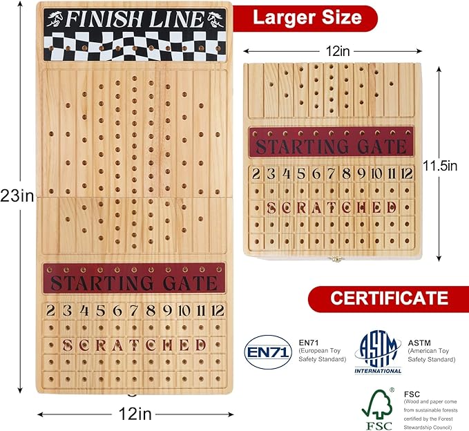- 【Fast-Paced Family Fun】: Experience the thrill of the racetrack with this horse race board game! Perfect for game nights, this easy-to-learn strategy game combines luck and skill, keeping players aged 6+ engaged. Race your horses to the finish line with dice rolls, bets, and surprises.
