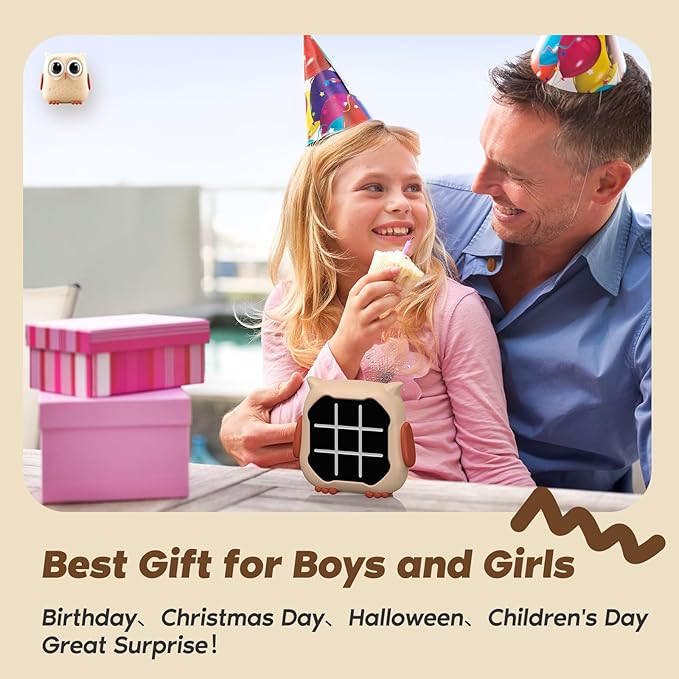 INKLAB Tic Tac Toe Game, Animal-Themed 3-in-1 Handheld Puzzle Game Console, Board Games for Kids, Portable Travel Games, Birthday Gifts for Ages 3+ (Owl)
