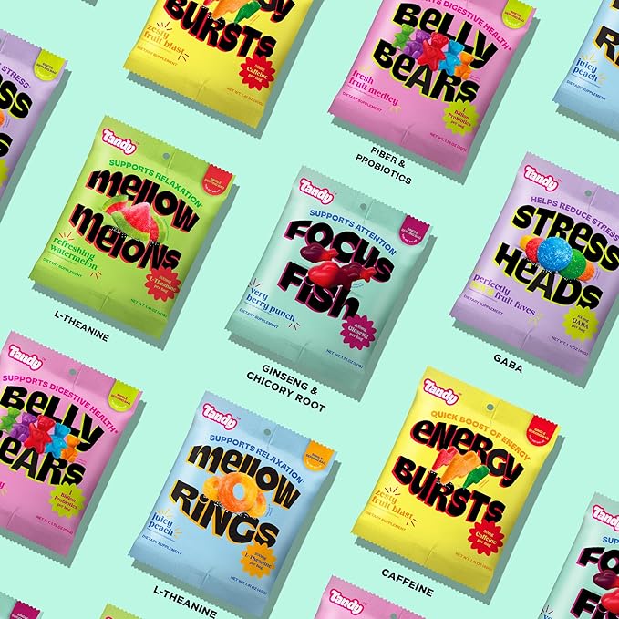 - TANDY FOCUS FISH 6-PACK: Dig into these single-serve bags of gummy supplements that not only taste insanely good, but help support attention and focus. These Ginseng gummies are the perfect, on-the-go wingman to defeat the days' distractions.