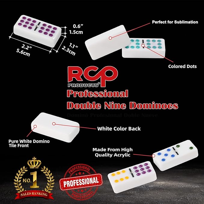 Dominos Set for Adults – Professional Double 9 Dominoes Set of 55 Tiles for Adults, Metal Spinner, Classic and Travel Board Game with Wood Case Juegos de Mesa (White)