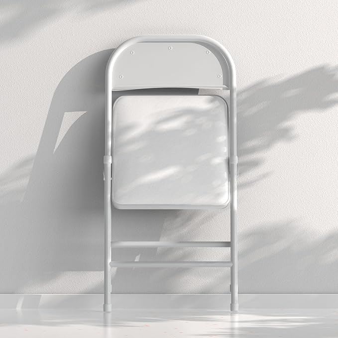 Nazhura 4 Pack Folding Chairs with Padded Cushion and Back, Khaki Metal Chairs with Comfortable Cushion and Durable Steel Frame for Home and Office, for Indoor and Outdoor Events (White, 4 Pack)
