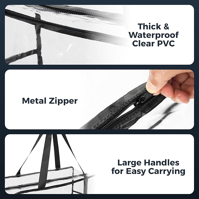- ๐๐๐๐ ๐๐ ๐๐๐ - Featuring smooth-gliding metal zippers, these large clear zippered bags ensure secure closure and easy opening every time. The two reinforced handles are designed for a comfortable grip, making it simple to carry and transport items whether you're moving them to a different room or packing for travel.