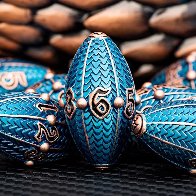 ARUOHHA DND Metal Dice Copper Blue Dragon Egg Dice with Metal Box, Role Playing Game RPG Polyhedral D and D Dice Set D20 D12 D10 D8 D6 D4