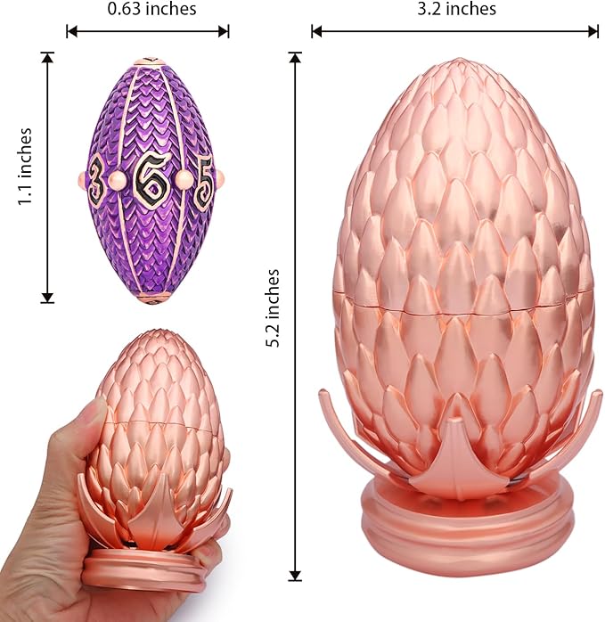 - 【Dragon Egg Dice Set】: Complete your gaming arsenal with this set including D4, D6, D8, D10, D12, D20, and D%, all fitting harmoniously within a unique dragon egg shell for easy storage.