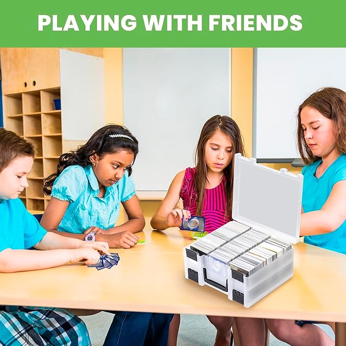 - Ample space: Card deck box measuring 14.4*10.6*5.8 inches, which can store at least 3200 standard-sized trading cards or 2400 with standard-sized inner sleeves transaction cards(exclusive of 3" x 4" TopLoaders). You can always take your cards on the go and share your favorite cards with friends whenever you want!