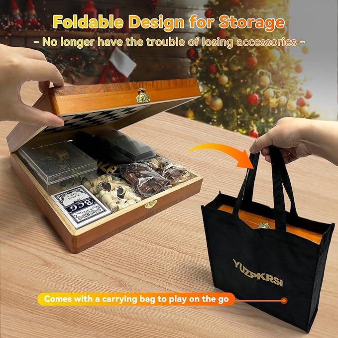 - [Convenient Foldable Design] This foldable horse race game is designed for easy transport and storage. It neatly folds into a wooden case that doubles as the playing board, making it ideal for taking to friends' houses, camping trips, or travels without the fear of losing any accessories