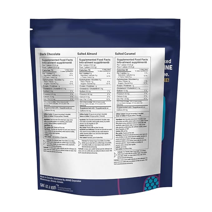 AWAKE - Caffeinated Chocolate Bites - USA Variety Pack (3 Flavors) 50 Bites - Peanut Butter, Milk Chocolate, & Caramel - 50mg Caffeine - Coffee Alternative - Fairtrade - Gluten-Free - Non GMO - 0.48oz