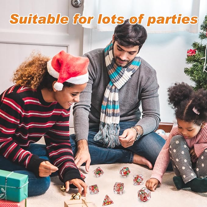 - Christmas Dice D20 dice set: Each dnd dice set includes 7 pieces polyhedral dices. W20 dice an icebreaker game getting your friends to join a murder mystery campaign with christmas dice dice.