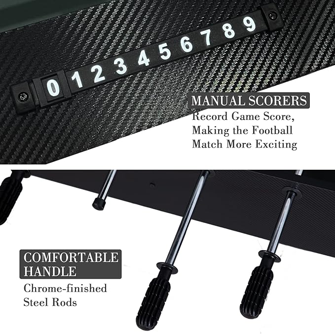 - 48" FOOSBALL TABLE & ERGONOMIC HANDLES: Perfect for any game room and players of all ages and abilities; Fully assembled dimensions-48" x 24" x 30.8"; The rod has a comfortable non-slip grip, which is ergonomically designed for better ball control.