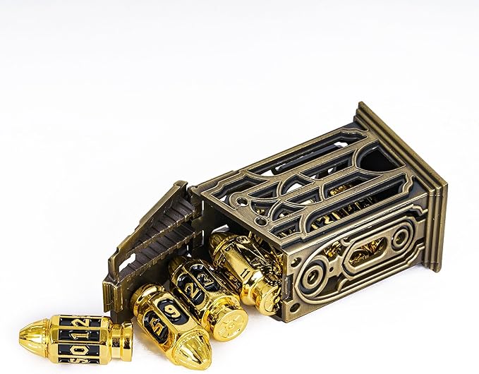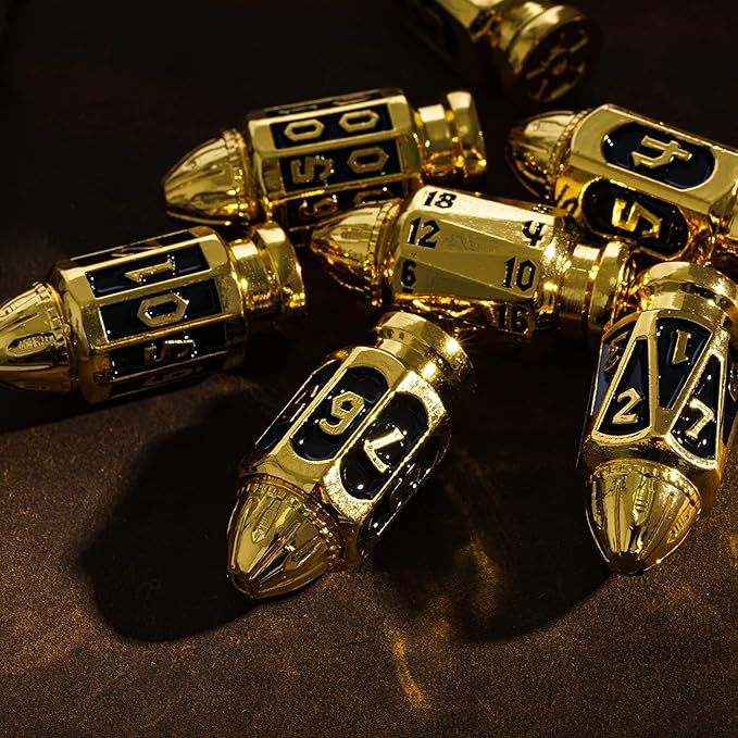 UDIXI Metal DND Dice Set with Unique Container, 7-Die Bullet RPG Dice Set for D&D, Role Playing Game or Other Tabletop Games(Golden Black)