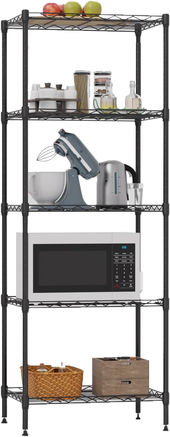 Metal Frame Storage Shelves 5-Tier Wire Shelving NSF Certified Storage Rack Shelf Heavy Duty Storage Shelf with Leveling Feet for Home Kitchen Garage, 12" Dx17 Wx48 H, Black