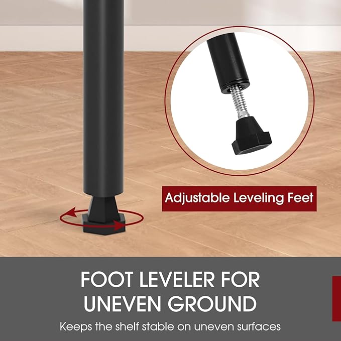 - Height Adjustable shelves: The height of each shelf can be easily adjusted to fit your storage needs. The flexible design of the storage shelves allows you to store goods of varying sizes while maximizing space. Ideal for use in the kitchen, garage, or office to store anything from small appliances to heavy tools.