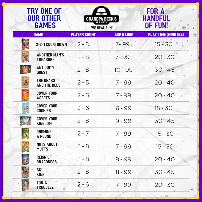 - Trusted by Millions! Grandpa Beck’s Games, creators of hits like Cover Your Assets and Skull King, have delighted players worldwide! Known for engaging, versatile gameplay—strategy, matching, elimination, and more—our games bring fun to any gathering. Join the millions enjoying game nights with us!