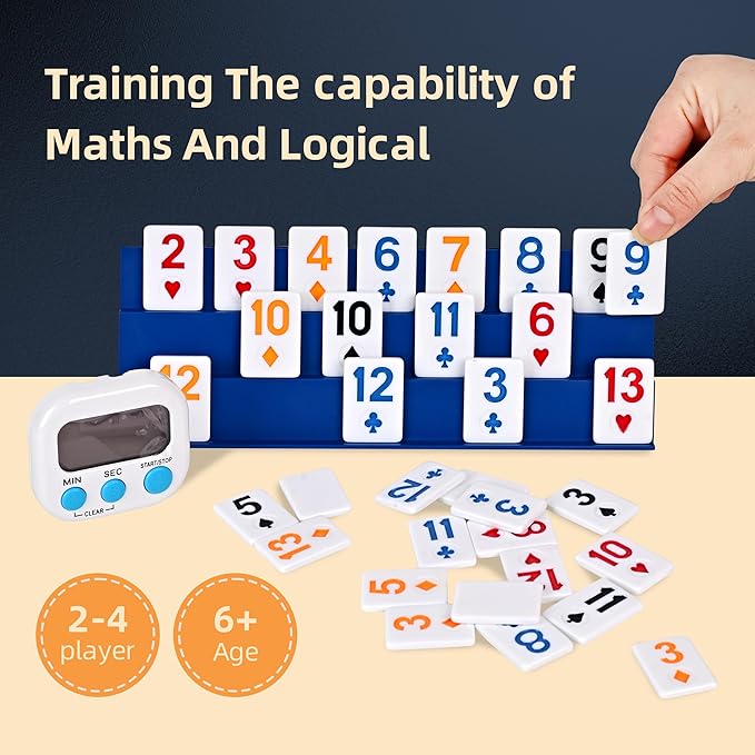 - [ Ideal Gift ] - Rummy Game set is packed in colorful stylish box, making it a perfect and impressive gift for family and friends for Christmas, Birthdays, Easter, Thanksgiving, New Year's, and other special celebrations. Rummy cube game develops strategic thinking and planning to outmaneuver opponents