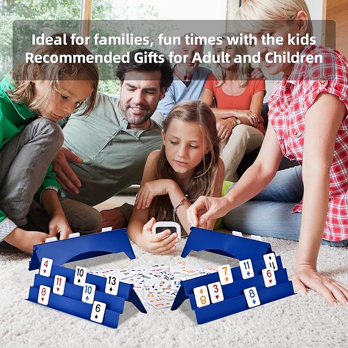 Doublefan Rummy Game, Original Poker Rummy with Color Box, Classic Board Game for Adult and Kids,106 Tiles, 4 Playing Rack, 1 Timing, 1 Dice (2-4 Players)
