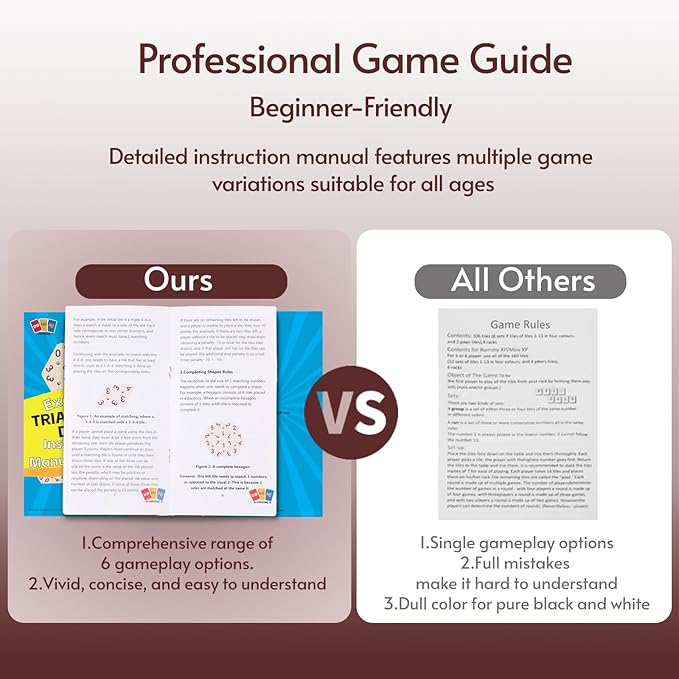 - Beginner-Friendly: Step-by-step instructions guide new players to start within minutes-no prior experience needed to enjoy classic triangular dominoes. Help beginners quickly get into this Board game