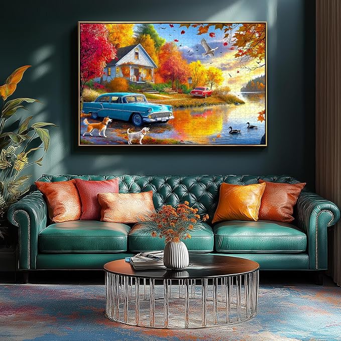 - 【jigsaw puzzles 500 pieces for adults】: Beautiful Fall Lakeside House and challenging funny puzzle 500 pieces for adults ,Clear picture, and perfectly interlocking parts provide an enjoyable and aesthetically pleasing puzzle experience. puzzles with letters on back for adults 500 piece to help you complete adult puzzles more efficiently. Includes jigsaw puzzles for adults, reference poster and a sturdy colored box with finished dimensions :21*15 inches / 53*38 cm