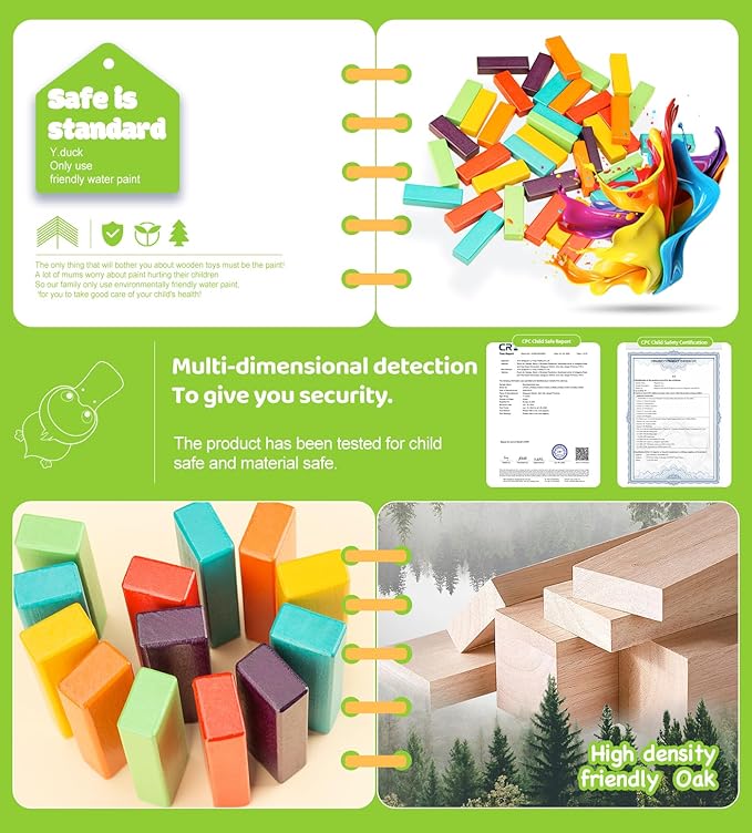 - Safe & Durable Design for Worry-Free Play – Crafted from high-grade beech wood, each block is hand-polished to ensure smooth, rounded edges and a splinter-free finish. The sturdy material ensures the blocks are durable and crack-resistant, providing a safe and enjoyable experience for kids and adults alike