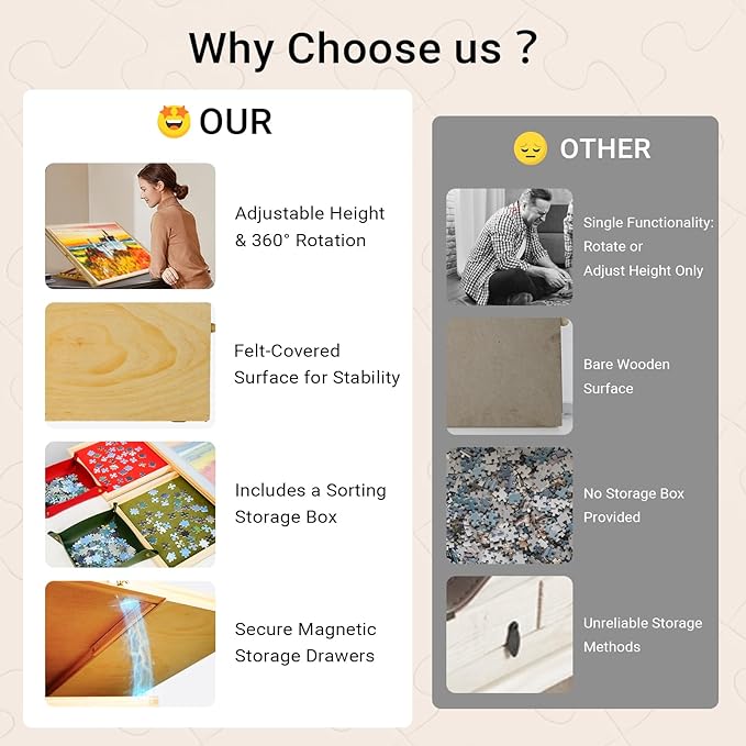 - ๐งบ Smooth-Glide Drawers & Bonus Storage: Comes with 4 easy-slide drawers,4 puzzle partition trays, a pet-safe PP shield, puzzle saver stickers, and a built-in handle for easy transport and storage.