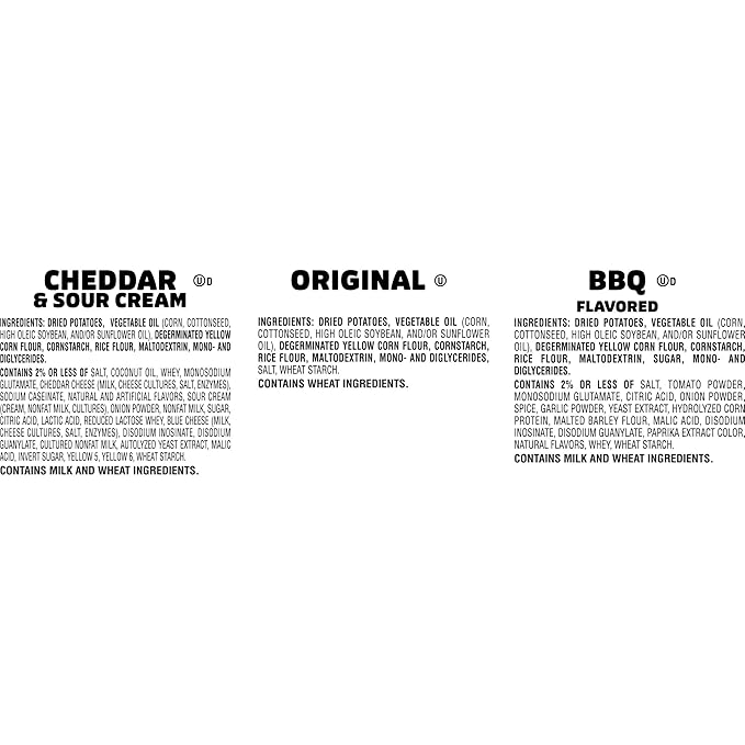 - Always tasty, never greasy snacks; Contains milk and wheat ingredients