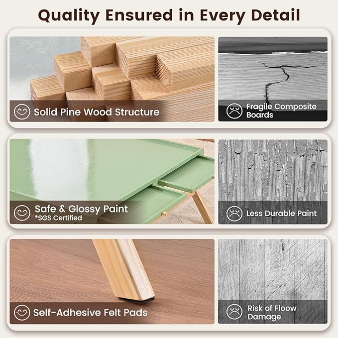- [Certified Quality]: Made from solid pine wood, offering stability and durability;Children’s Product Certificate certified, ensuring safe materials for kids;coated with SGS-certified, non-toxic paint for added safety