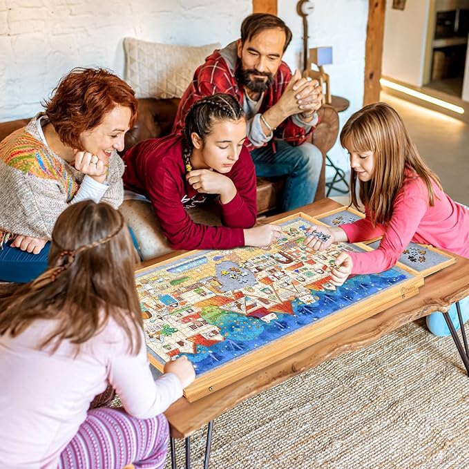 - [Spacious Workspace]:The 35" x 26.8" desktop provides ample space for up to 1,500-piece puzzles, while four drawers offer dedicated storage for sorting and organizing pieces—perfect for both adults and children to enjoy.