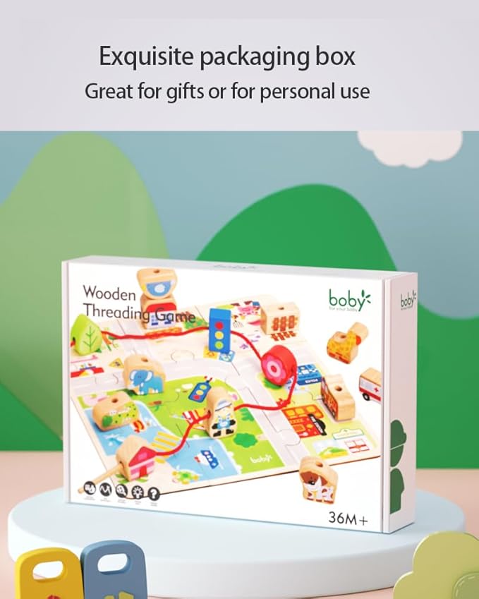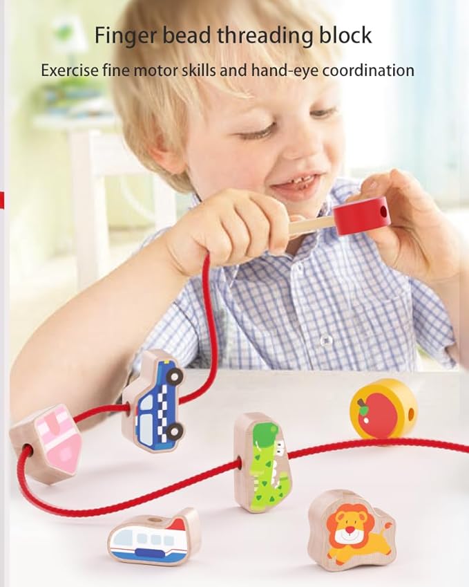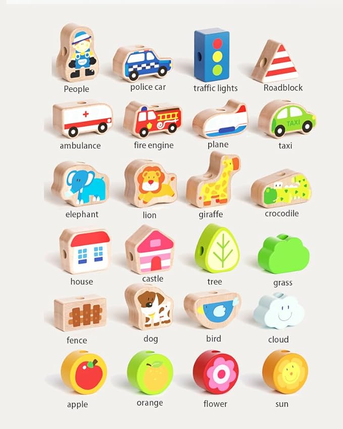 - Educational Threading Fun: This set of 24 solid wood bead blocks promotes cognitive development through threading, sorting, and matching activities, ideal for children's fine motor skills and hand-eye coordination.