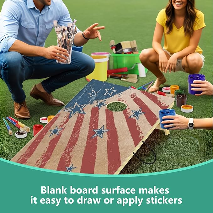 - Unleash Your Creativity - You can customize the plain boards with your own stickers, decals and paints to make your own unique cornhole set. Get your friends and family together, get creative boards and enjoy the cornhole outdoor toss gaming