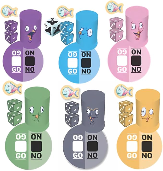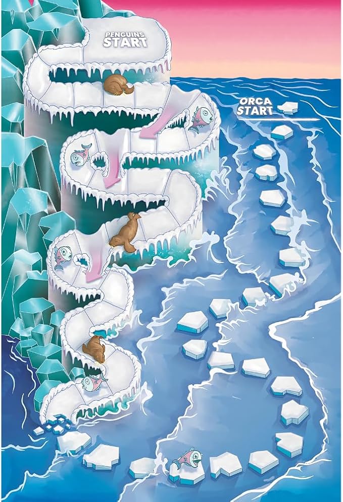 - Each game includes 1 Game Board, 6 Orca Standees, 6 Penguin Standees, 6 Penguin Boards, 20 Fish Tokens, 12 Penguin Dice, 1 Seal Die, 1 Orca Die, and 6 Dice Cups.