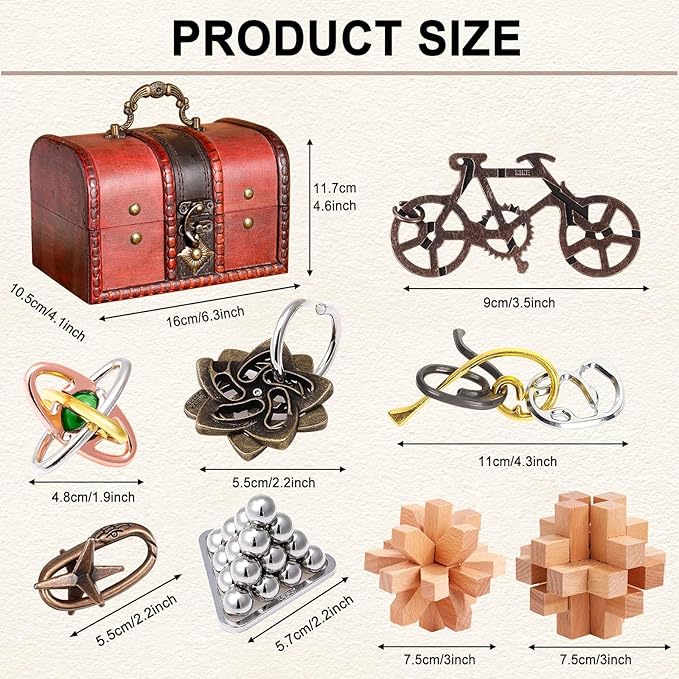 - Premium Craftsmanship:Meticulously crafted from high-grade metal and quality wood, our puzzles,Every style is carefully chosen.guarantee a sleek touch, robustness, and safety without any pointed edges. Designed for lasting durability, ensuring enjoyment over the long term.Enhance your experience as you play