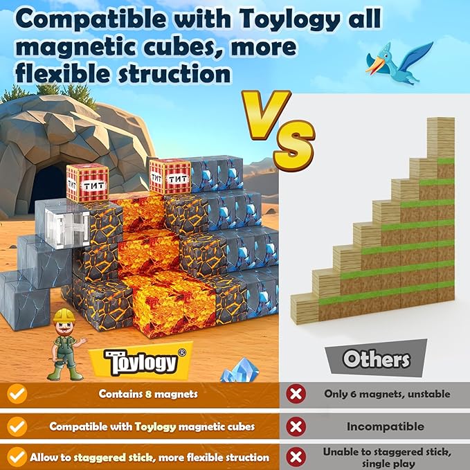 - 【COMPATIBLE & EXPAND MAGWORLD】Our magnet blocks construction toys is kid-friendly with rounded edges and a size ideal for small hands. Compatible with all Mine Magnet World blocks, offering endless possibilities for creativity. Each set includes an idea booklet to inspire exploration within their magworld. Easily expand your existing forests and dino sets to create larger and more intricate scenes. Perfect magnetic blocks for kids ages 4-8 to play safely and creatively.