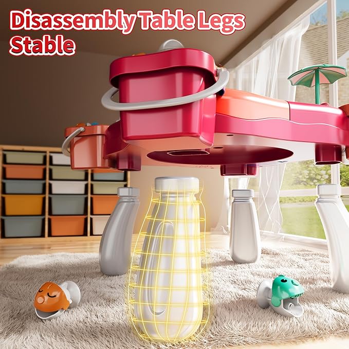 - Easy Storage and Portable: Our fishing toy set for kids and toddlers is smooth edges, light weight and easy to carry outside. The 4 table legs are removable. Kids can play it as living room games and board game, family game in backyard or kindergarten
