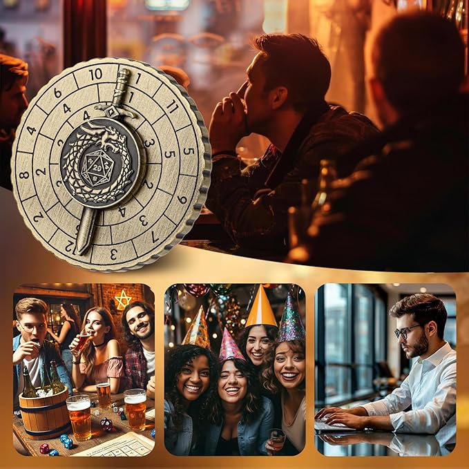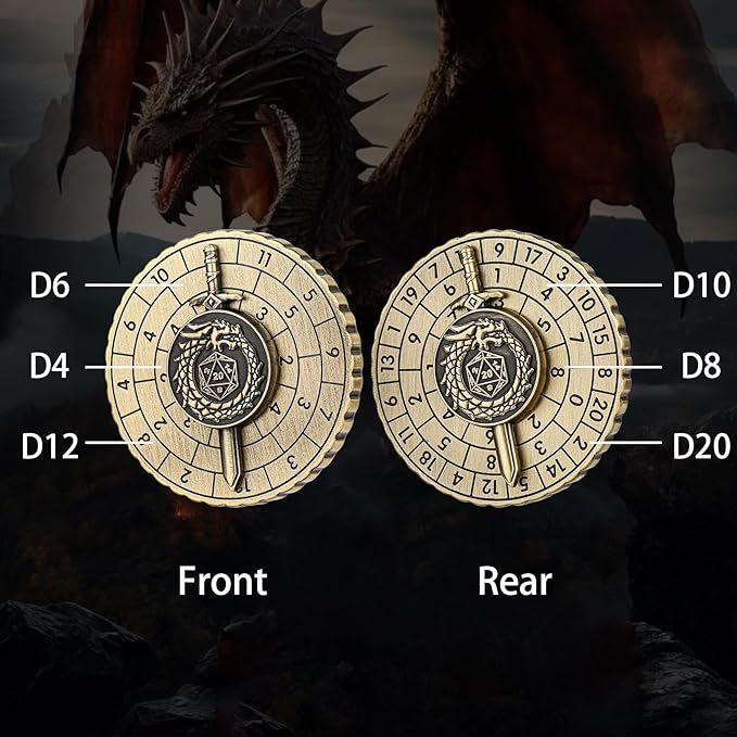 - Dragon and Sword Design: This zinc alloy dnd dice spinner features an intricate dragon and sword design,unique graphics impress players, the dice set includes D20, D10, D8, D12, D6, D4, adding a touch of fantasy and adventure to your gaming experience