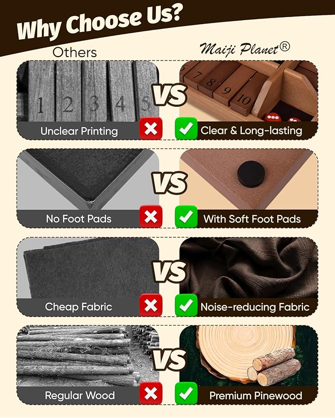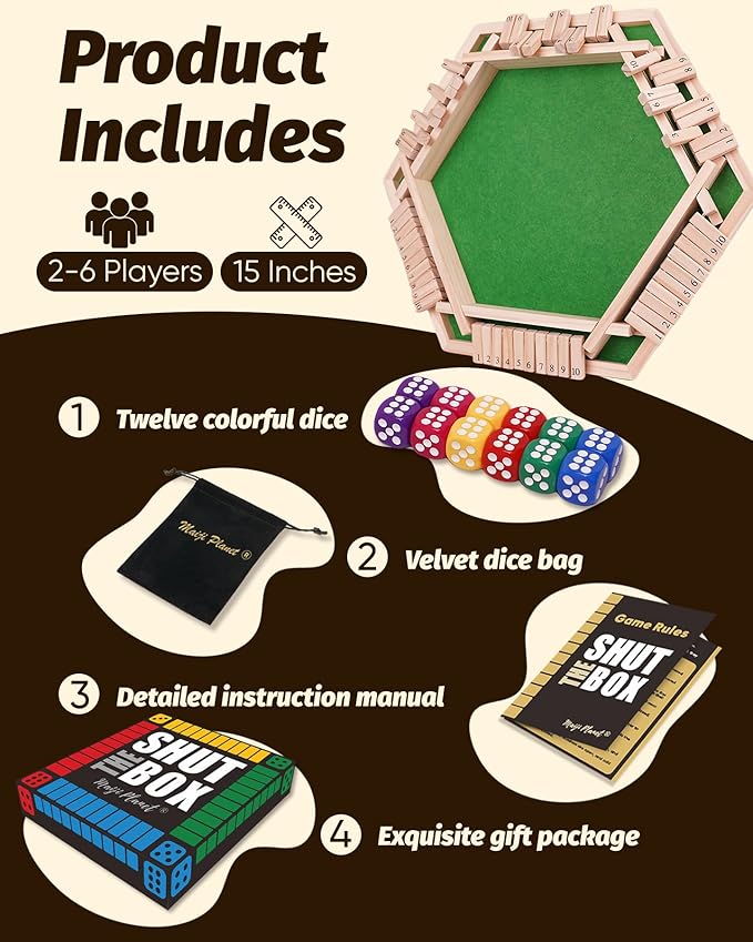 Large Shut The Box for 2 6 Player Math Family Game Night Quick Dice Game for Party Camp Bar Travel Class School Wooden Classic Table Top Board Game for Adult and Kid Group Elder 15"