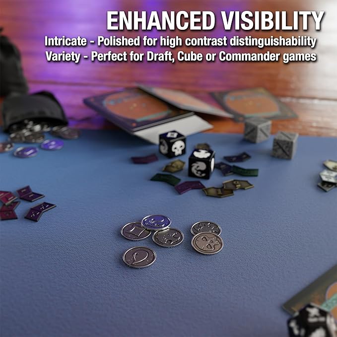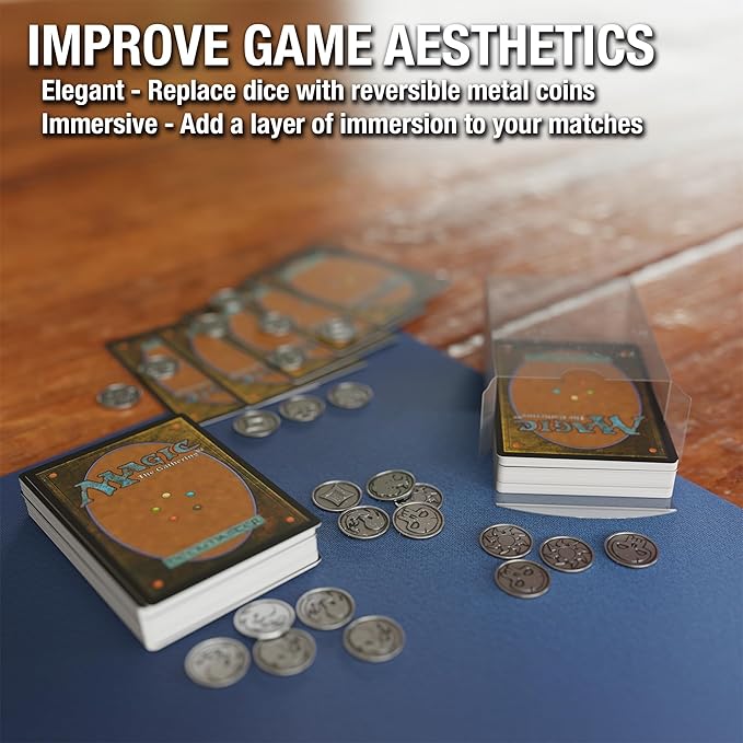 - Reversible Durable Metal Design: Dual-sided coins allow quick mana type switching during gameplay.
