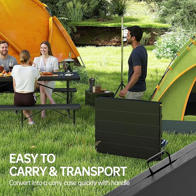 - [Portable Convenience] Redefining mobility, the set collapses seamlessly into a slimline carrying case featuring an ergonomic soft-grip handle. Its ultra-portable folded profile (table:35.43"D x 29.13"W bench:36.2"D x 11"W) simplifies transport to campsites, outdoor venues, or multi-purpose spaces without compromising structural integrity
